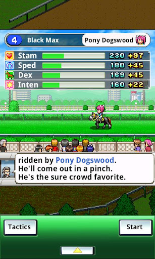 Find horses with the right combination of stamina and speed and intensity and train them to race. Keep winning races to earn bigger and better prizes, as well as the ability to compete in even bigger and more exciting races on an international scale.