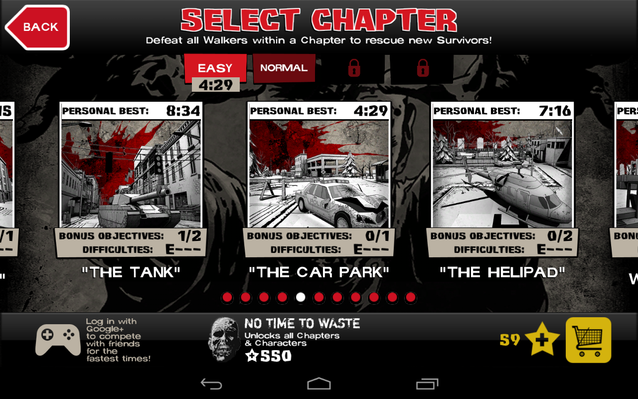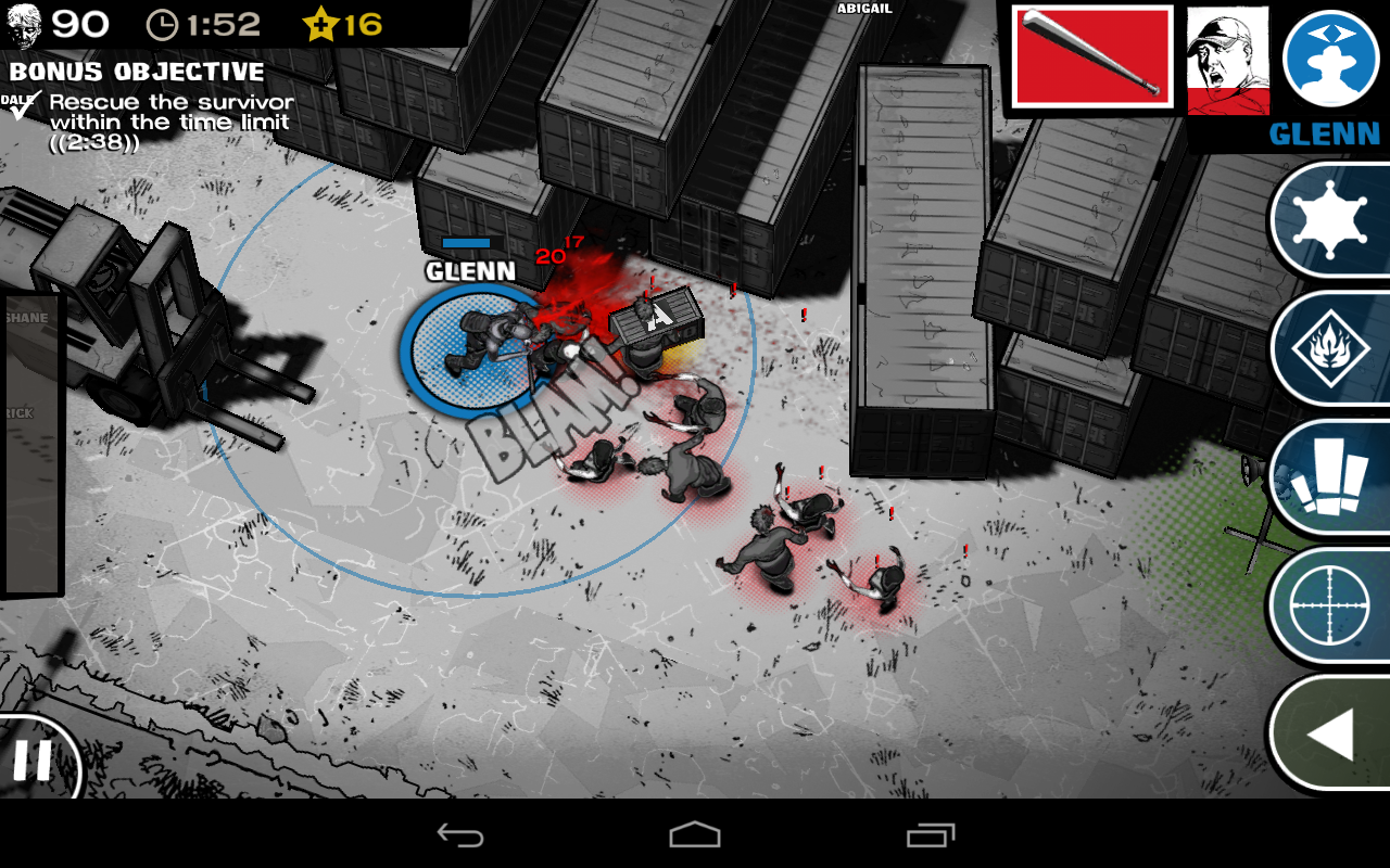 Play as your favorite characters from the series – Rick, Glenn, Shane, Carl, Andrea, Lori and more! Assemble and choose your ultimate team of four, hunt for supplies, upgrade, and use unique special character abilities to survive against the walker hordes!
